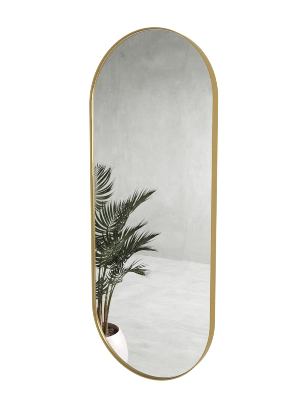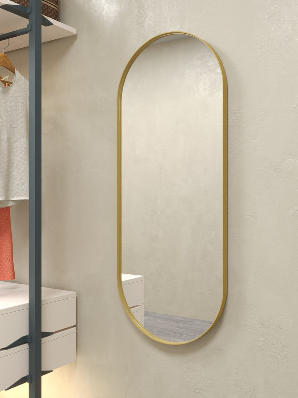 Дизайнерское овальное настенное зеркало Glass Memory Harmony в металлической раме золотого цвета в Щекине